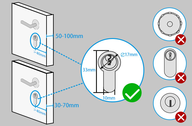 Please check the picture and confirm that the WELOCK smart lock matches your door thickness and lock hole. WELOCK smart locks are suitable for most European profile doors.